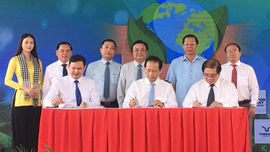 Lãnh đạo tỉnh Bến Tre và Quỹ Tấm lòng vàng ký kết thực hiện Đề án trồng 10 triệu cây xanh. |
