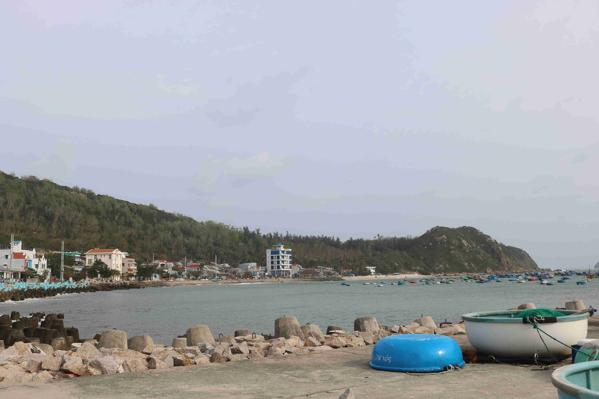 Từ bến tàu Hàm Tử tại Cảng cá Quy Nhơn, chúng tôi theo tàu cá vượt biển khoảng gần 2 giờ là đến địa phận xã đảo Nhơn Châu, thuộc thành phố Quy Nhơn.