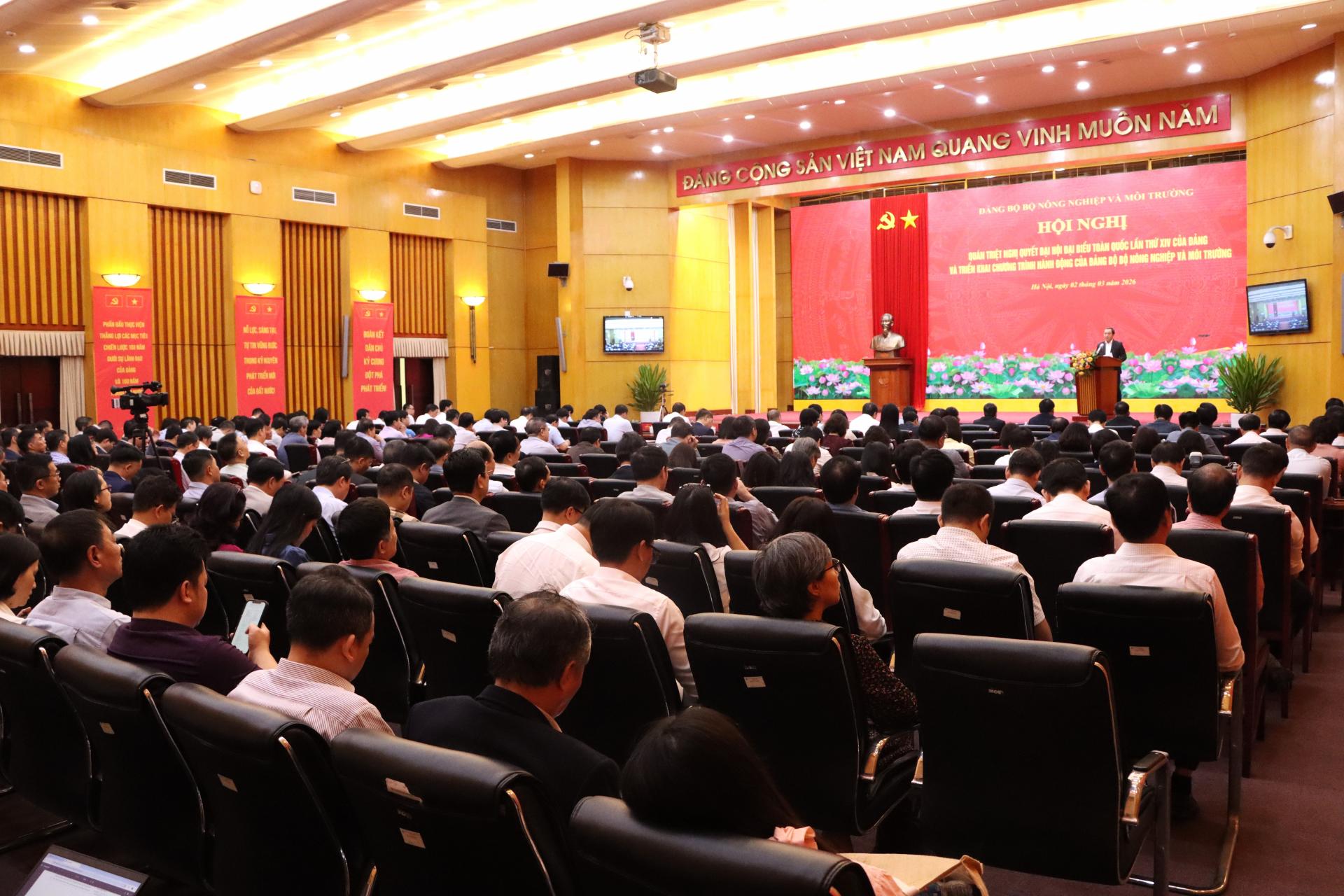 Phát biểu tại Hội nghị, đồng chí Trần Đức Thắng, Ủy viên Bộ Chính trị, Bí thư Đảng ủy, Bộ trưởng Bộ Nông nghiệp và Môi trường nhấn mạnh yêu cầu quán triệt sâu sắc tinh thần Nghị quyết XIV, triển khai Chương trình hành động với quyết tâm chính trị cao, “nói đi đôi với làm”, bảo đảm tiến độ, chất lượng và hiệu quả.