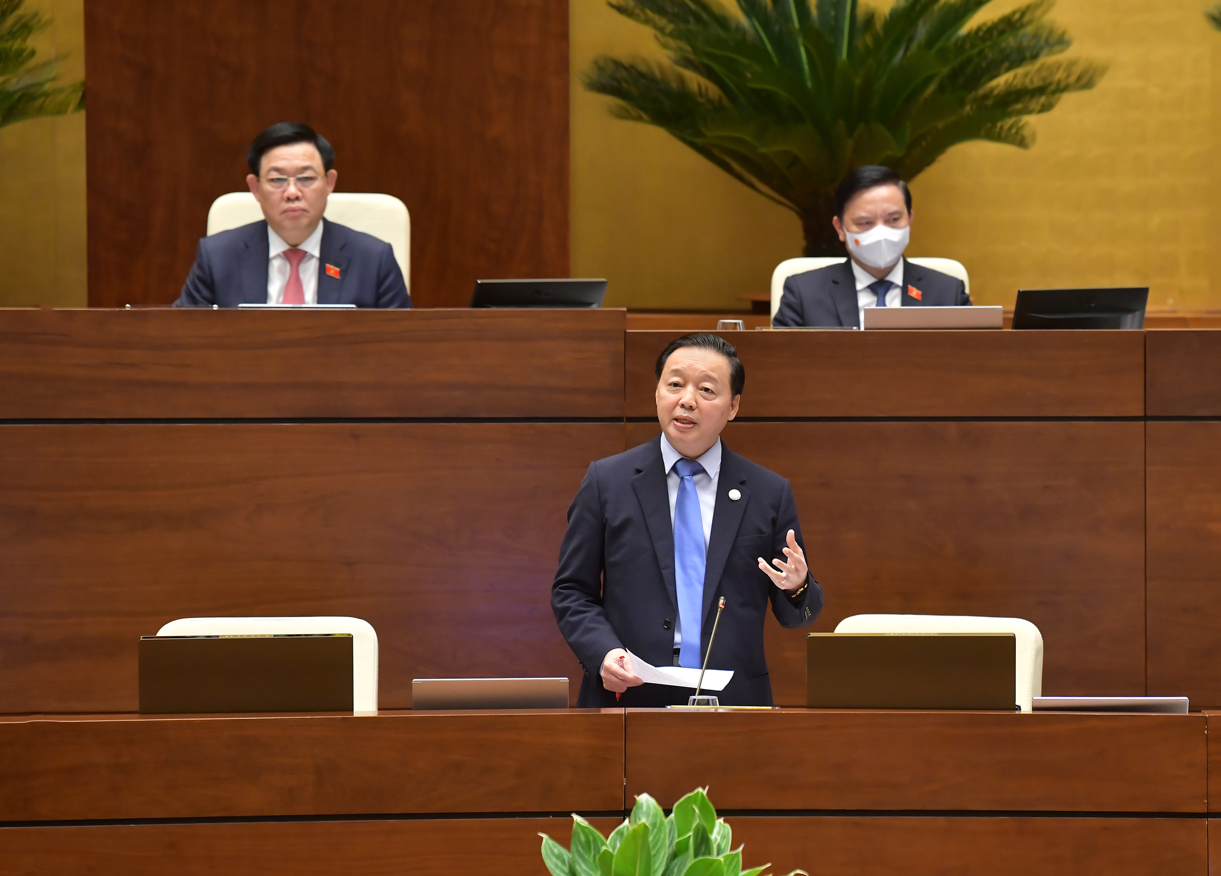 Chiều 16/3, dưới sự điều hành của Phó Chủ tịch Quốc hội Nguyễn Đức Hải, Ủy ban Thường vụ Quốc hội tiến hành phần chất vấn và trả lời chất vấn về nhóm vấn đề thuộc lĩnh vực tài nguyên và môi trường. Bộ trưởng Bộ Tài nguyên và Môi trường Trần Hồng Hà đăng đàn trả lời các câu hỏi Đại biểu Quốc hội và cử tri quan tâm, trong đó là các vấn đề xử lý rác thải, chất thải, vấn đề ô nhiễm các lưu vực sông trong thời gian vừa qua.