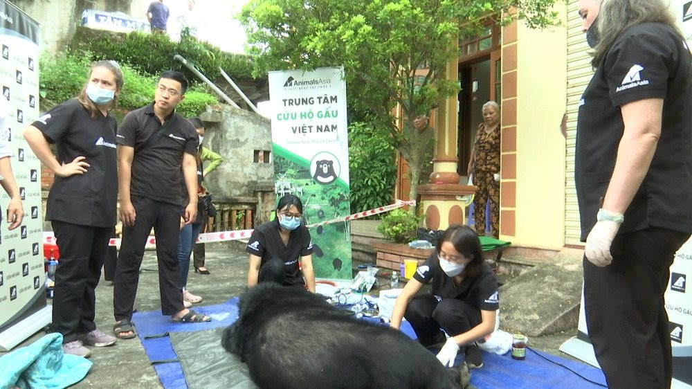 Sau khi kiểm tra sức khỏe, cá thể gấu ngựa đã được tiêm thuốc mê và đưa ra khỏi lồng an toàn. Cá thể gấu ngựa này sẽ được đưa về Trung tâm cứu hộ gấu Việt Nam tại Vườn Quốc gia Tam Đảo, tỉnh Vĩnh Phúc để nuôi dưỡng, chăm sóc và bảo vệ cùng với 192 cá thể gấu khác tại đây.