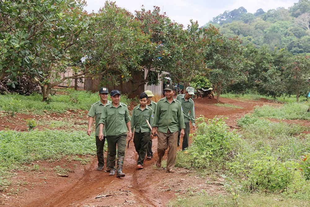 Cán bộ và các hộ dân được nhận khoán cùng đi kiểm tra rừng