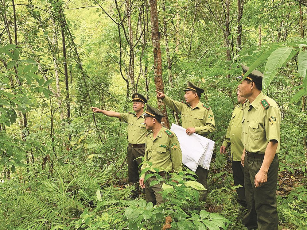 Cán bộ Hạt Kiểm lâm Sốp Cộp tuần tra, bảo vệ rừng tại xã biên giới Mường Lèo.