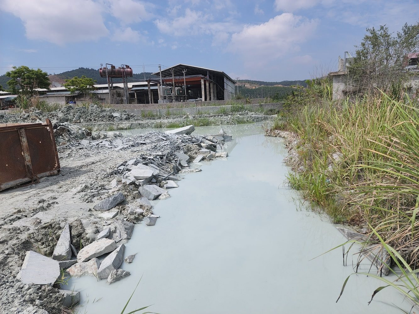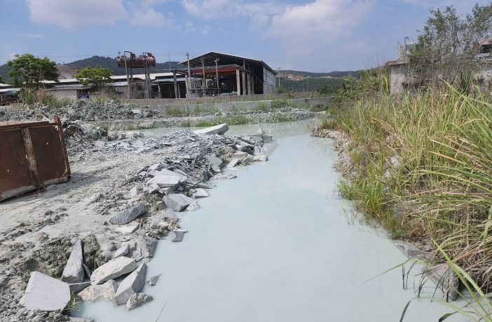 Bức tường ngăn bị đập phá để nước thải từ xưởng xẻ đá chảy ra ngoài?