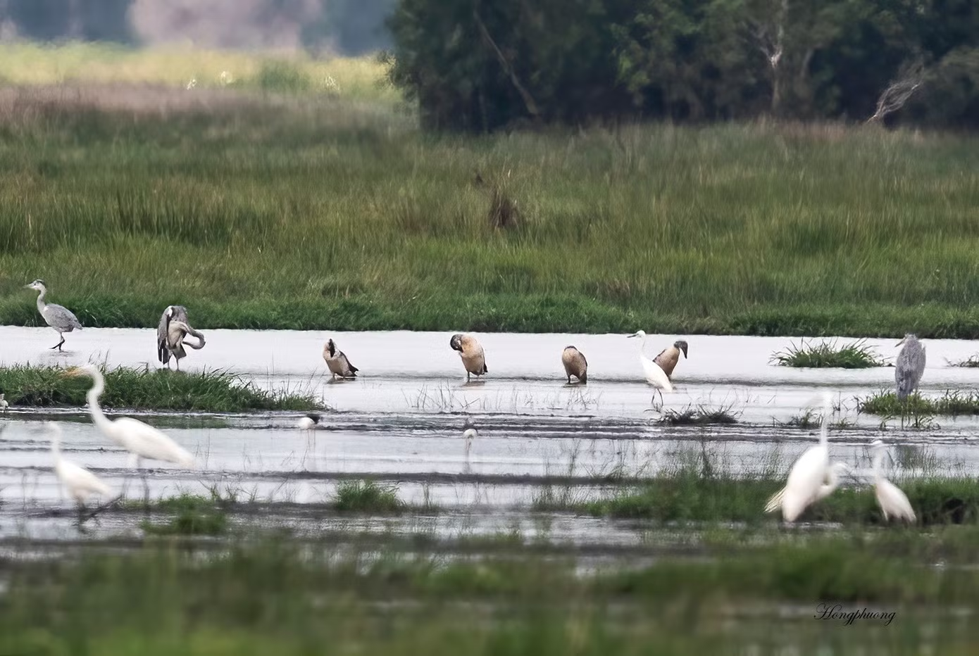 Các khu vực được phục hồi sinh cảnh hay các đầm nước dọc tuyến du lịch trở nên sống động với sự hiện diện dày đặc của chim nước.