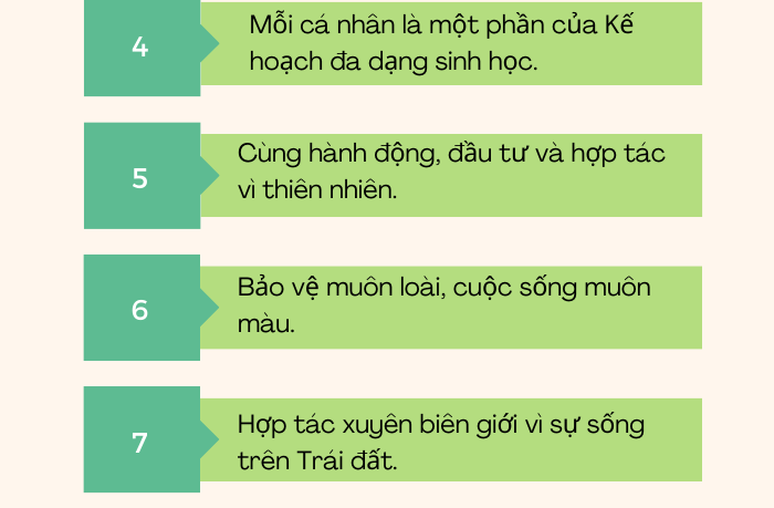 Tăng cường truyền thông, giáo dục và nâng cao nhận thức về đa dạng sinh học và các giá trị của đa dạng sinh học trong chiến lược phát triển bền vững của quốc gia; lồng ghép nội dung bảo tồn đa dạng sinh học vào các chương trình giáo dục đồng thời thúc đẩy lối sống hài hòa với thiên nhiên.