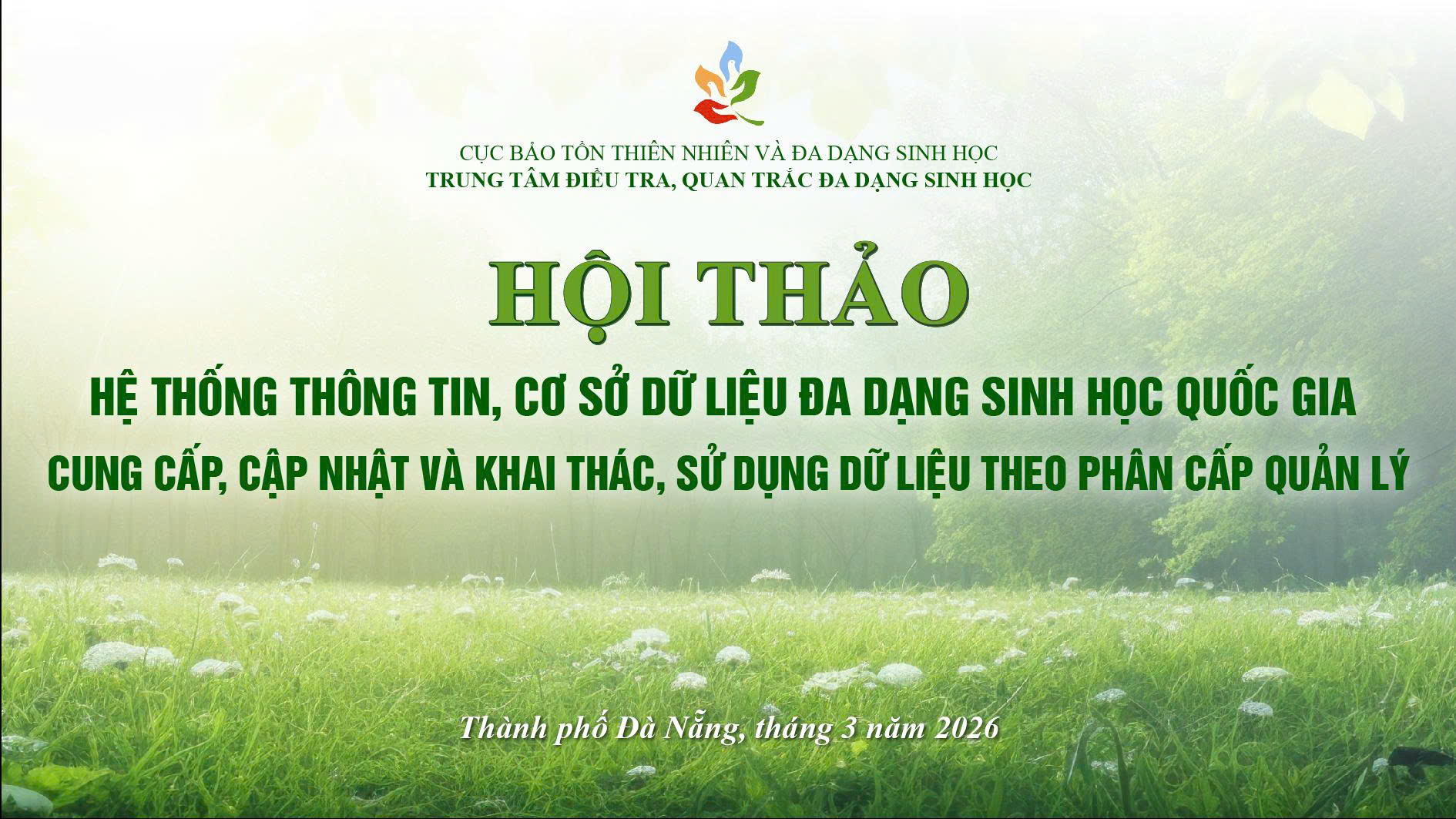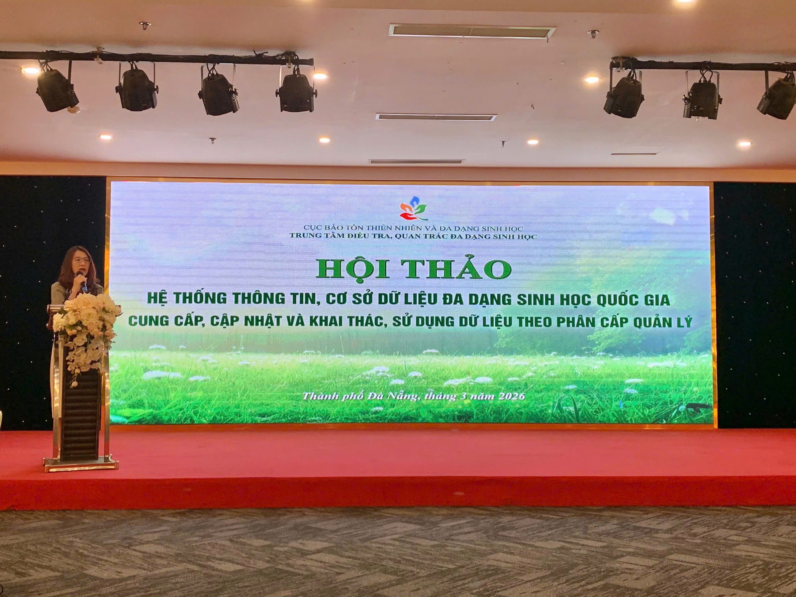 Nhằm tăng cường hướng dẫn, trao đổi và thúc đẩy việc triển khai Hệ thống thông tin, cơ sở dữ liệu đa dạng sinh học quốc gia, Trung tâm Điều tra, Quan trắc đa dạng sinh học đã tổ chức Hội thảo “Hệ thống thông tin, cơ sở dữ liệu đa dạng sinh học quốc gia – Cung cấp, cập nhật và khai thác, sử dụng dữ liệu theo phân cấp quản lý” tại thành phố Đà Nẵng vào ngày 20 tháng 3 năm 2026.