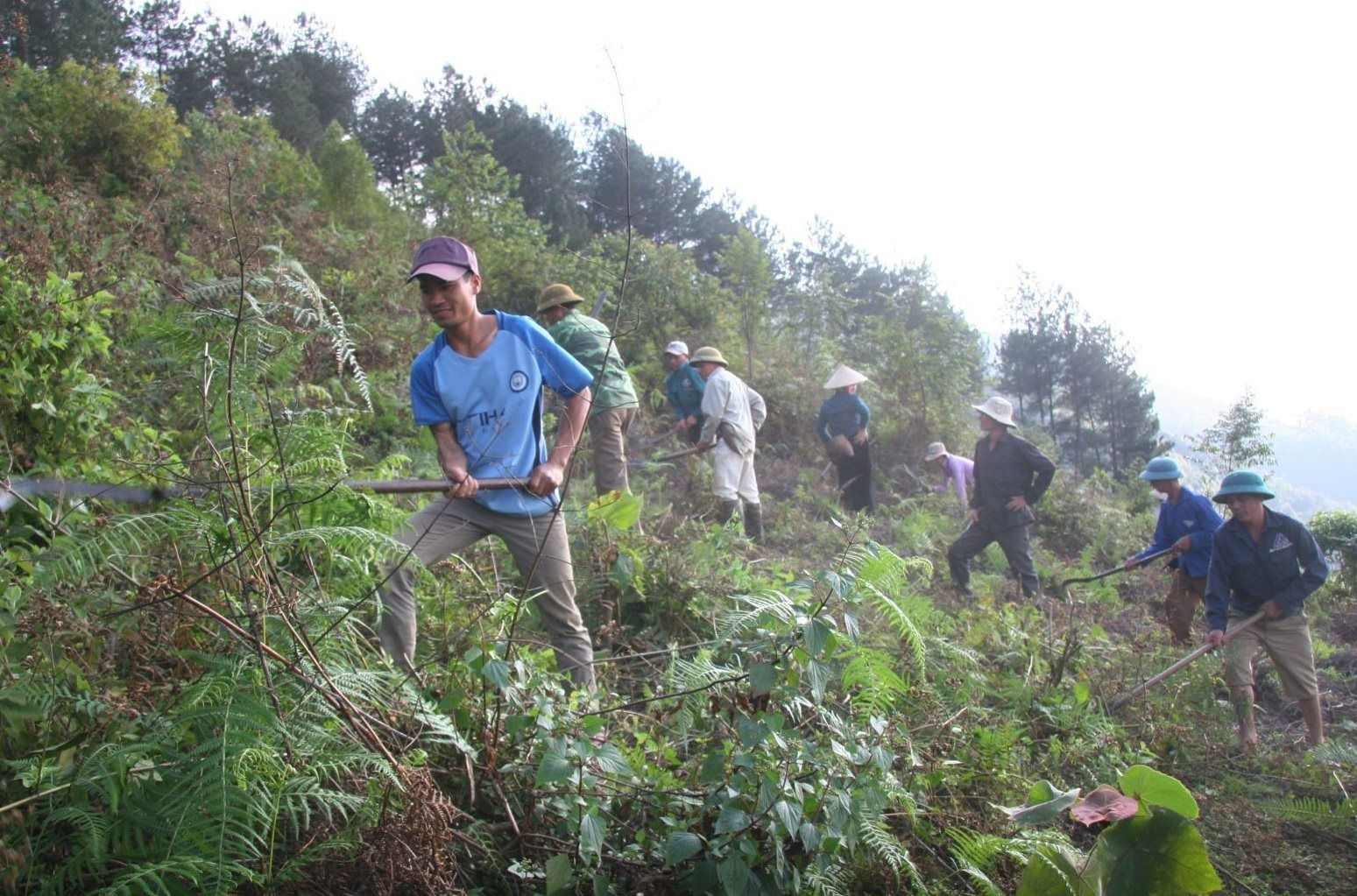 Người dân xã Tà Mung, huyện Than Uyên phát dọn thực bì phòng chống cháy rừng. |