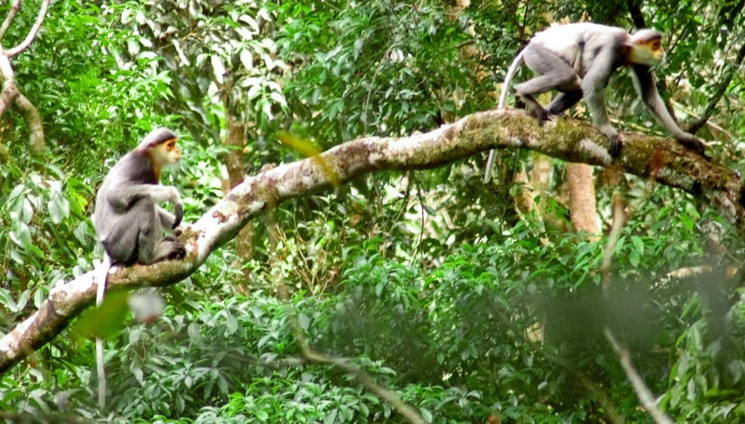 Hiện số lượng ngoài tự nhiên của chà vá chân xám ước chỉ còn khoảng 1.000-2.000 cá thể, đang suy giảm do mất sinh cảnh và tác động của con người. Ảnh: L.A.