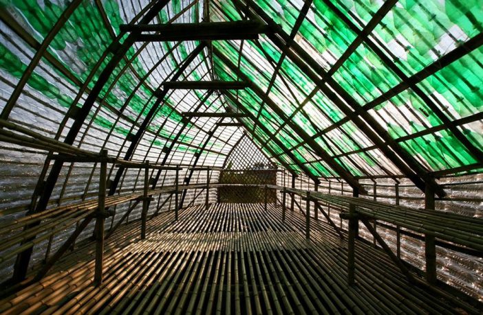 Vì vậy, họ sử dụng vật liệu tái chế để xây dựng ngôi nhà. Các ống bê tông vỡ được sử dụng để làm nền móng và hỗ trợ khung kết cấu làm từ tre. Tường làm từ chai nhựa có tác dụng cách nhiệt, ngăn ánh nắng trực tiếp chiếu vào làm nóng cây vào mùa hè, đồng thời giữ ấm vào mùa đông. Với diện tích khoảng 16m2, chi phí xây dựng ước khoảng 10 triệu đồng, trong đó, sử dụng khoảng 3.000 chai nhựa phế liệu. Diện tích này đủ để tạo một vườn ươm khoảng 10.000 cây giống mỗi mùa; đồng thời, có thể sử dụng làm nhà nghỉ ngơi của nông dân khi đi làm đồng.