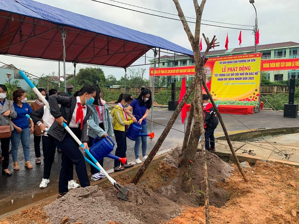 Đại diện UBND phường An Sơn kêu gọi tất cả nhân dân, mỗi một gia đình… tích cực hưởng ứng phong trào Tết trồng cây ngay từ những ngày đầu xuân. Theo đó, các cấp, các ngành cần tiệp tục đẩy mạnh tuyên truyền về chương trình “Vì một Việt Nam xanh”, phát động phong trào thi đua mọi người trồng cây, mọi nhà trồng cây, để xanh đường, xanh nhà… góp phần để thành phố Tam Kỳ đạt đô thị loại I vào năm 2025.