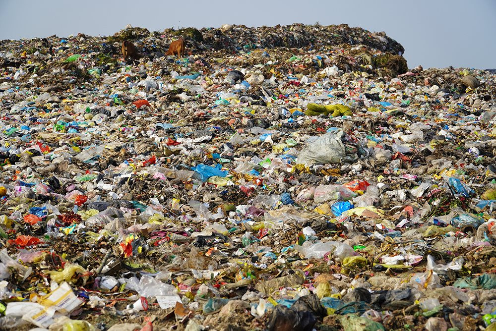 Bãi rác phường Trung Sơn (TP. Sầm Sơn) chất cao như núi.