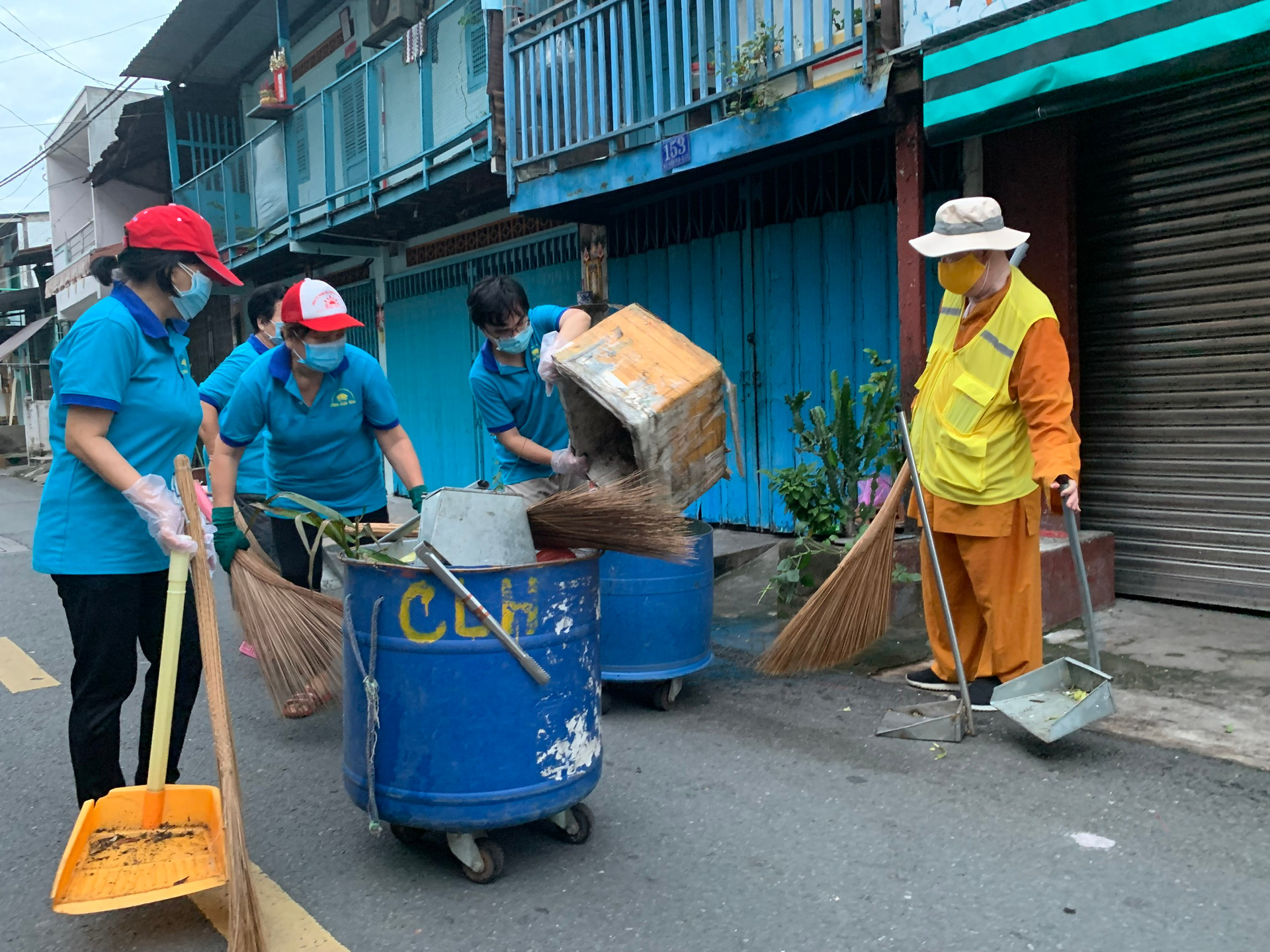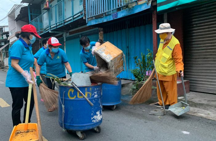 Một buổi ra quân dọn vệ sinh môi trường của Câu lạc bộ Hành trình xanh chùa Liên Hoa (quận 1, TP.HCM)