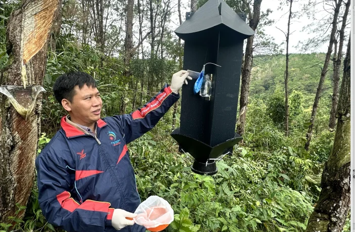 Đến nay, dự án đã hoàn thành 2 chương trình đặt hệ thống bẫy côn trùng tại các khu vực có nguy cơ cao. Trong 2 giai đoạn đặt bẫy năm 2023 và 2024, các cán bộ FPRC đã thu thập được gần 2.000 mẫu côn trùng thuộc 40 loài gồm các loài mọt hại vỏ, mọt mang nấm, xén tóc. Kết quả này bổ sung vào số lượng 192 bẩy và 960 điểm dữ liệu để cung cấp thông tin về các loài gây hại hiện tại hoặc các loài gây hại mới”, ông cho biết.