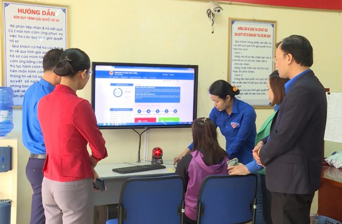 Đoàn thanh niên huyện Quỳnh Phụ, tỉnh Thái Bình năng động, sáng tạo đã có nhiều hỗ trợ, hướng dẫn người dân làm quen sử dụng DVCTT. (Ảnh: thaibinhtv.vn)